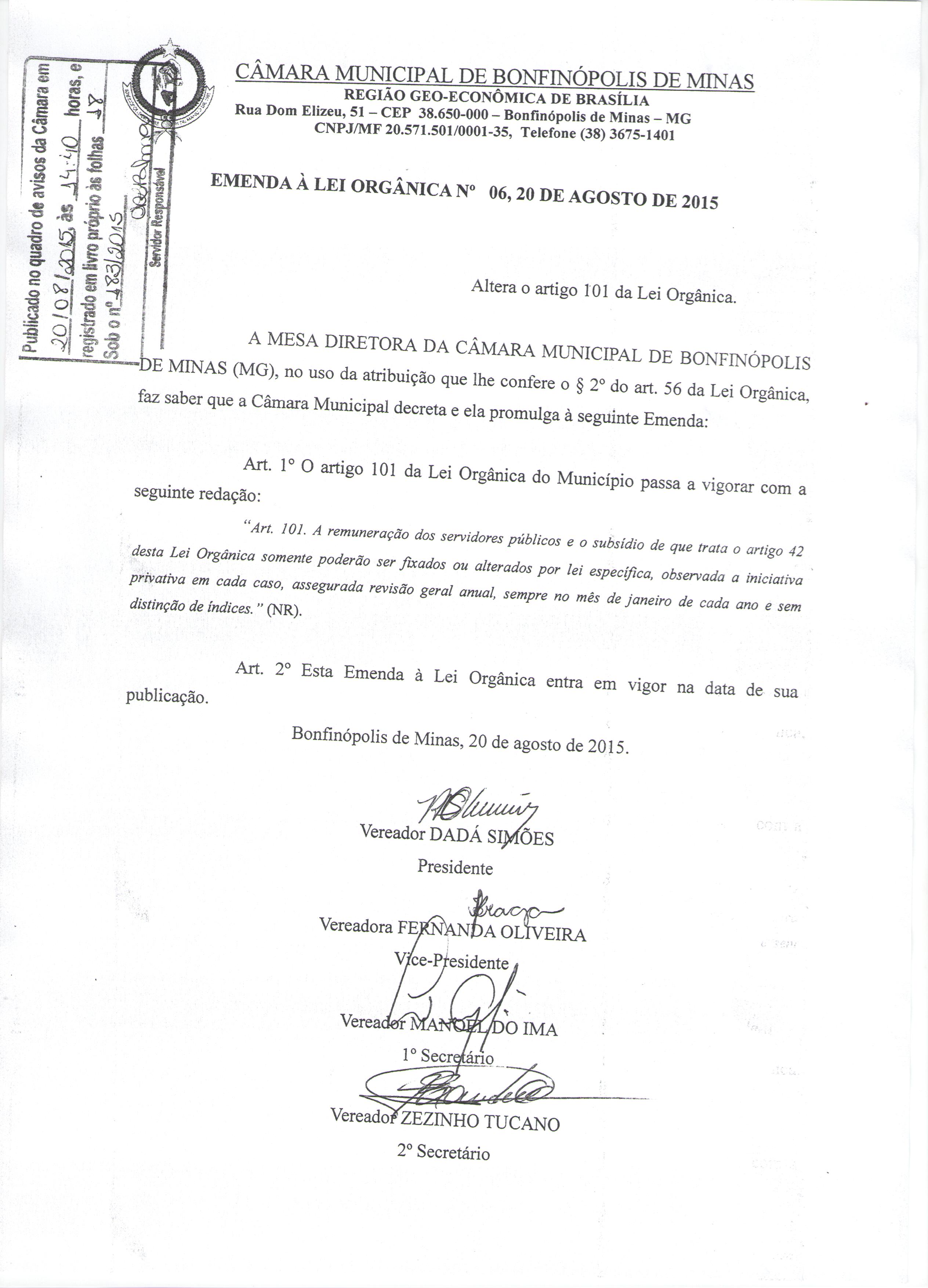 | Emenda a Lei Orgânica nº6 | Avulso | 21/03/2016 | Mesa Diretora | 863.jpeg |