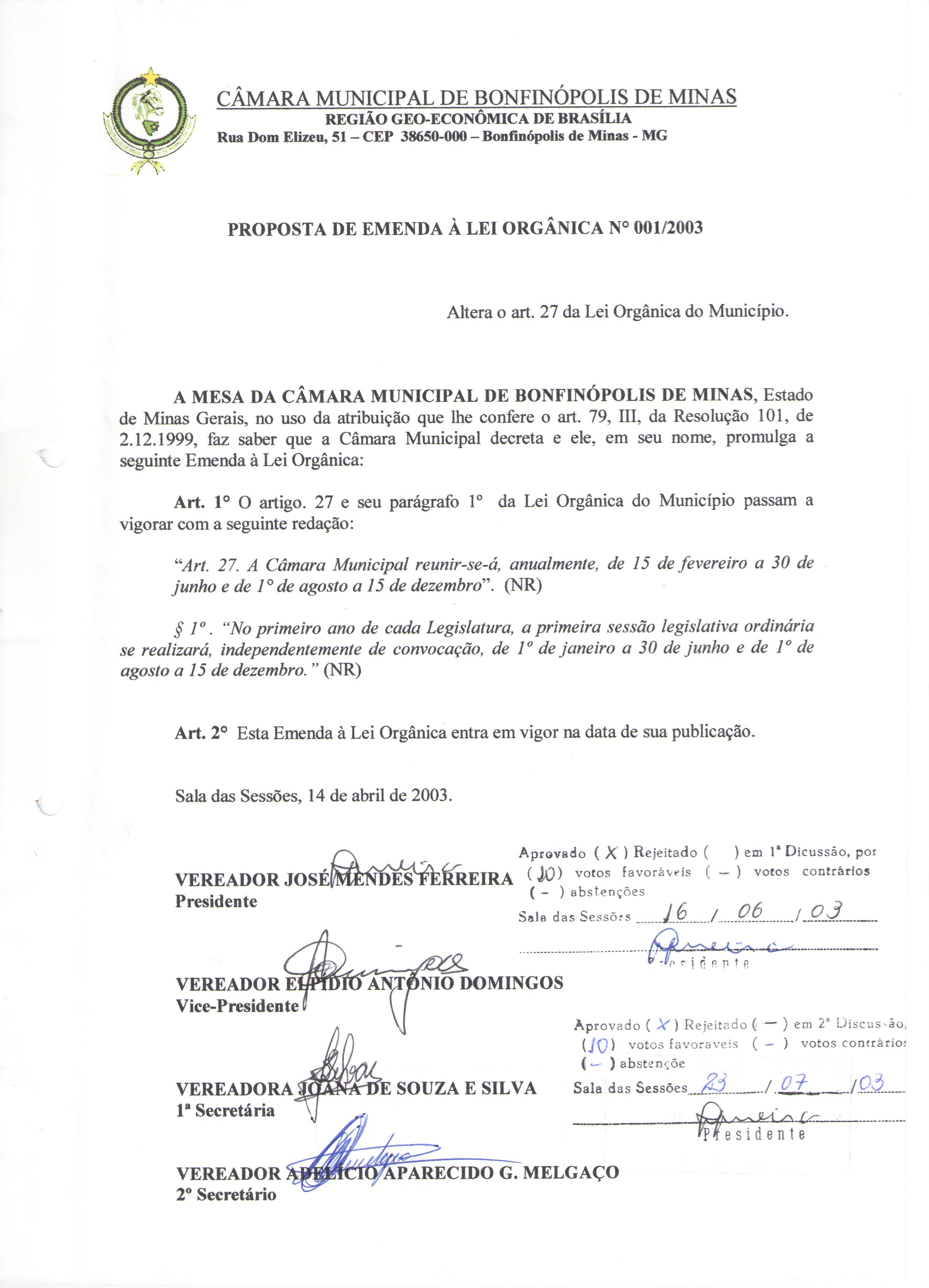 PELOM 1/2003 - Proposta de Emenda à Lei Orgânica