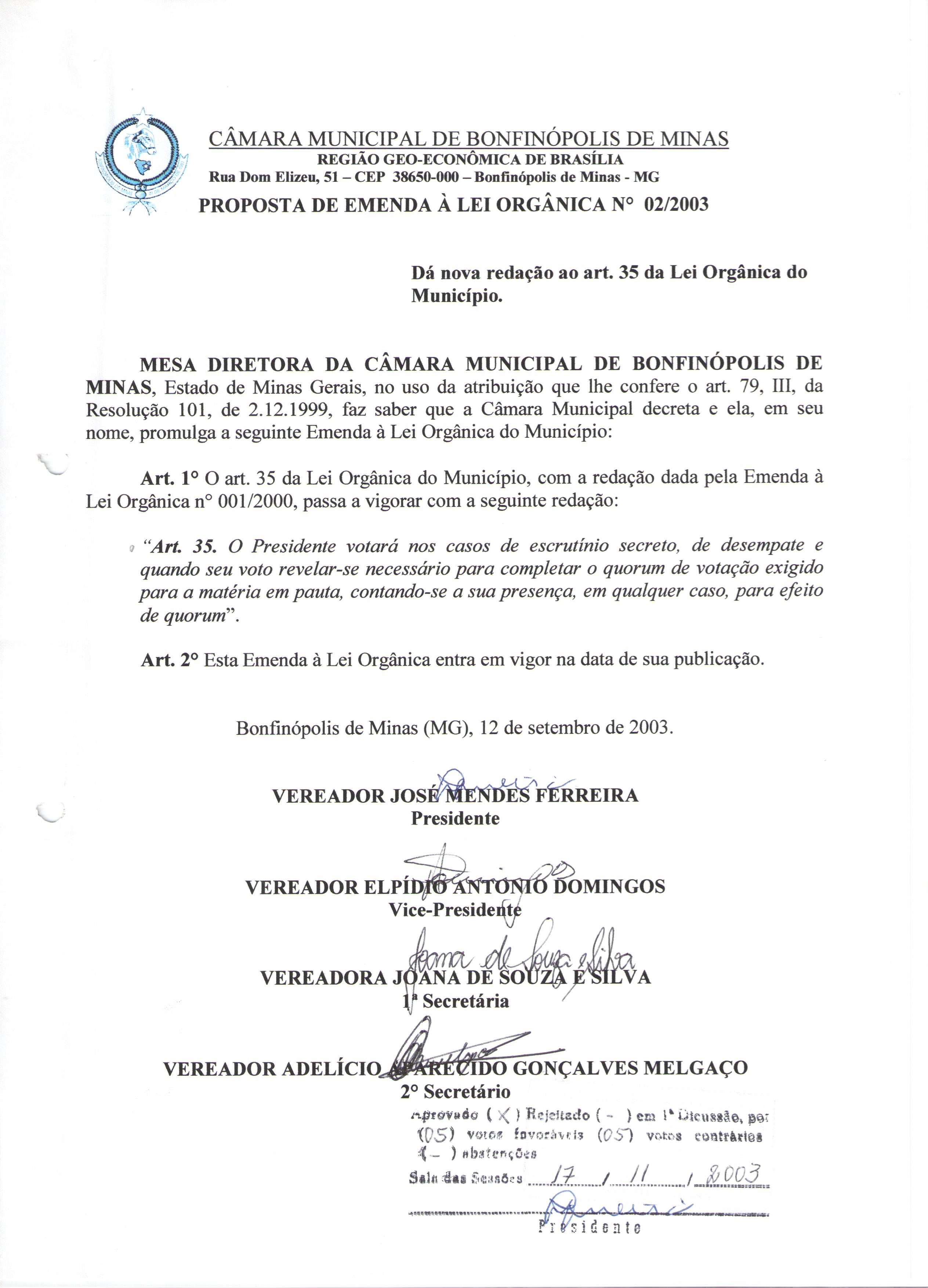 PELOM 2/2003 - Proposta de Emenda à Lei Orgânica