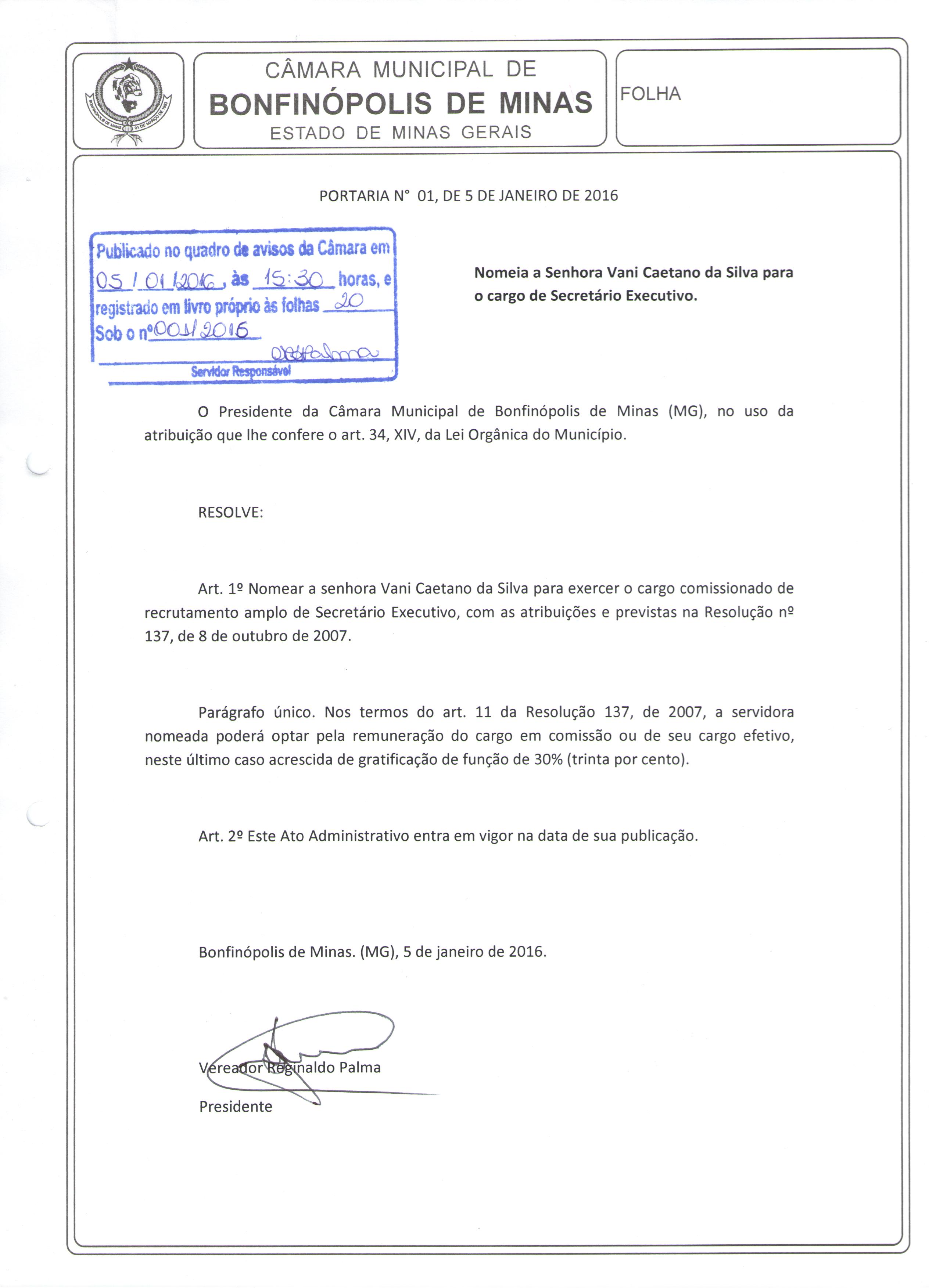 NOMEIA A SENHORA VANI CAETANO DA SILVA PARA O CARGO DE SECRETÁRIO EXECUTIVO.