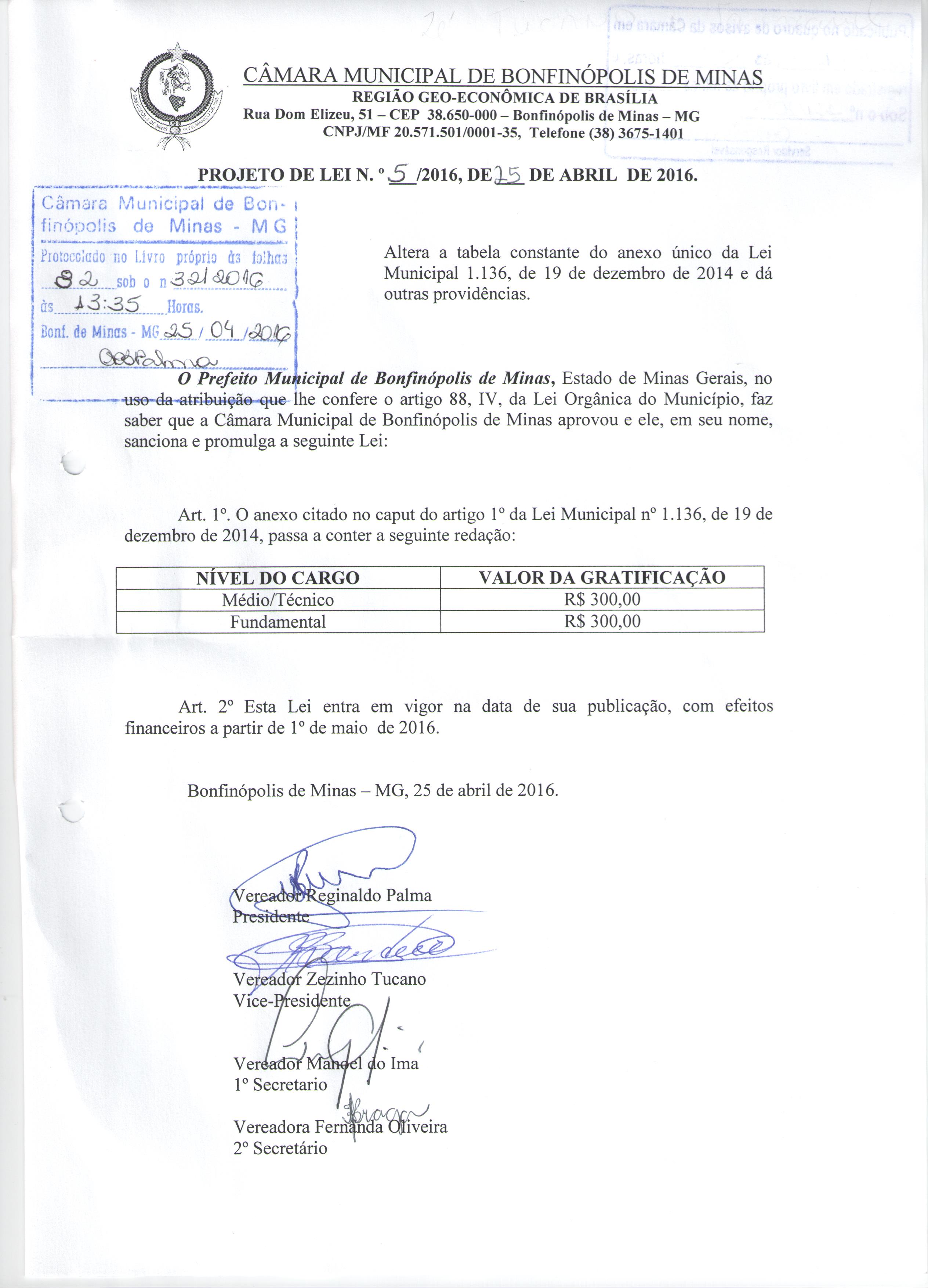 Norma Jurídica Vinculada: Lei nº 1.201, de 20 de junho de 2016