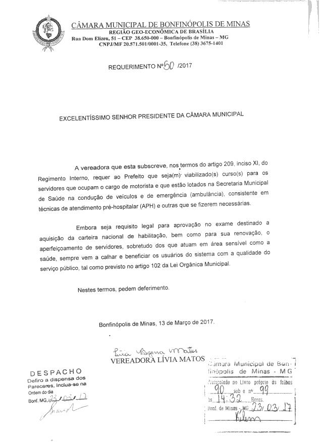 Ementa: A VEREADORAS QUE ESTA SUBSCREVE, NOS TERMOS DO ARTIGO 209, INCISO XI, DO REGIMENTO INTERNO, REQUER AO PREFEITO DO PREFEITO QUE SEJA(M) VIABILIZADOS(S) CURSO(S) PARA OS SERVIDORES QUE OCUPAM O CARGO DE MOTORISTA E QUE ESTÃO LOTADOS NA SECRETARIA MUNICIPAL DE SAÚDE NA CONDUÇÃO DE VEÍCULOS E DE EMERGÊNCIA (AMBULÂNCIA), CONSISTENTE EM TÉCNICAS DE ATENDIMENTO PRÉ-HOSPITALAR (APH) E OUTRAS QUE SE FIZEREM NECESSÁRIAS.