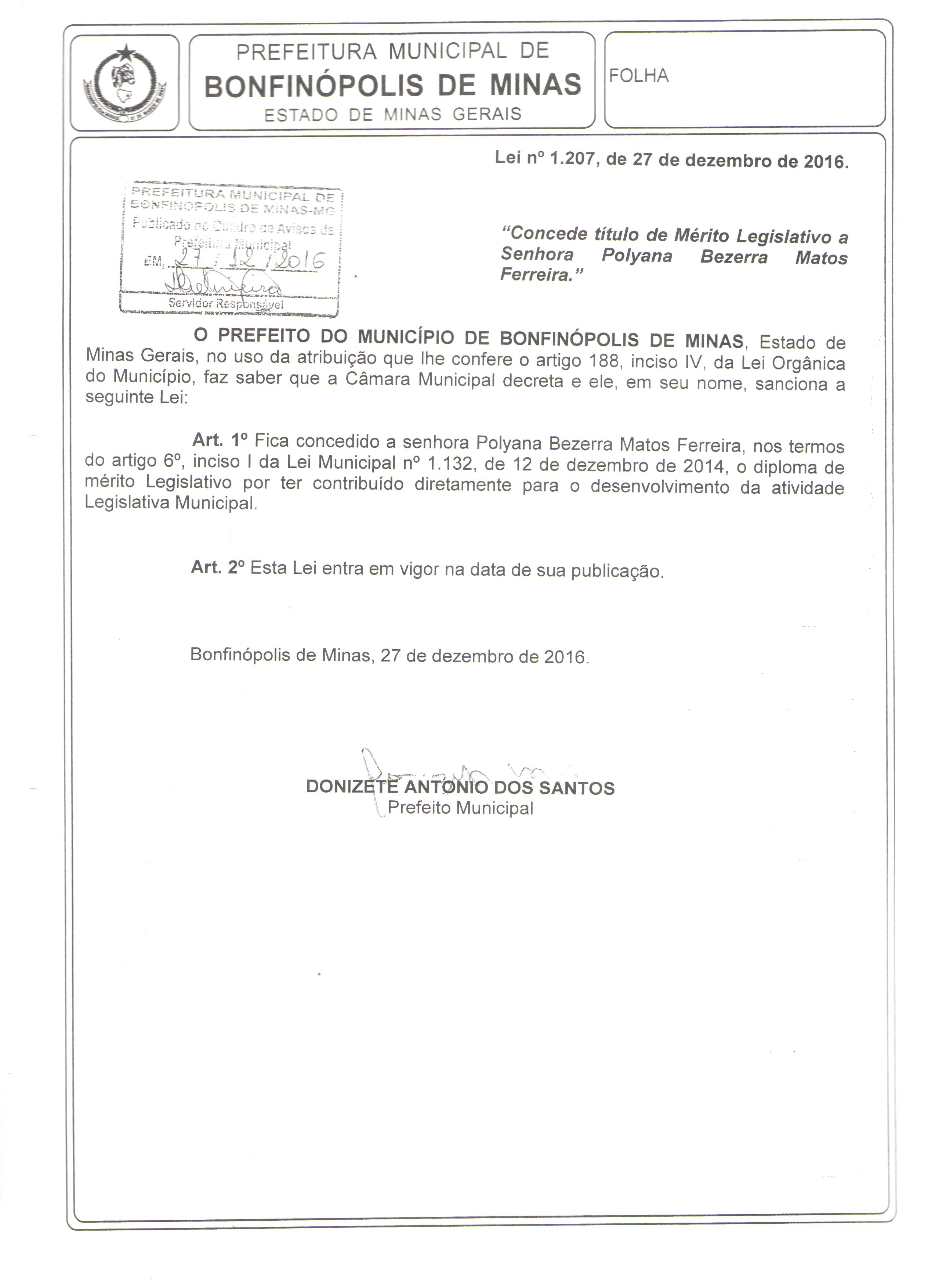 Lei nº 1.207, de 27 de dezembro de 2016