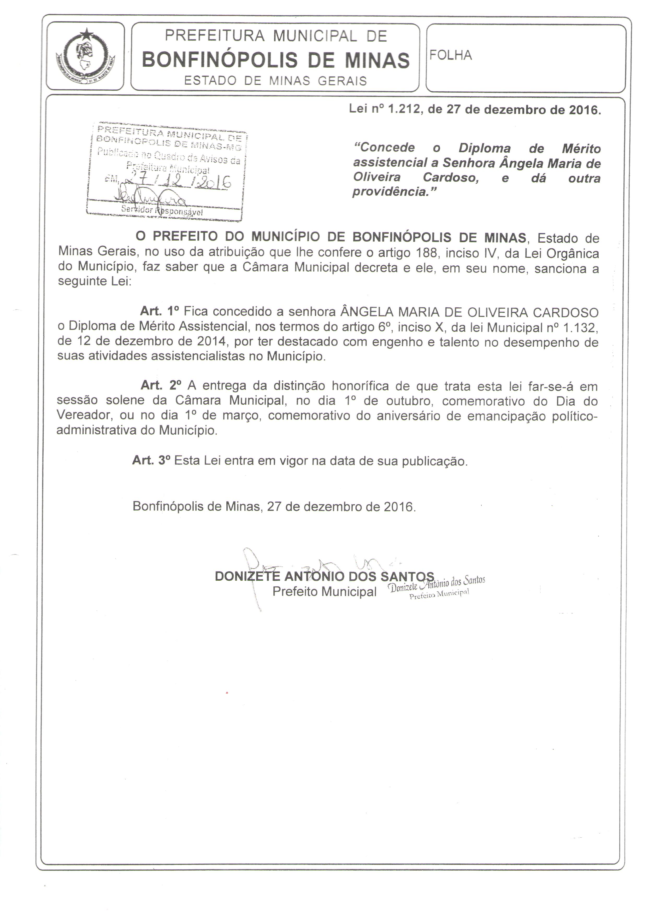 CONCEDE O DIPLOMA DE MÉRITO ASSISTENCIAL A SENHORA ÂNGELA MARIA DE OLIVEIRA CARDOSO, E DÁ OUTRA PROVIDÊNCIA.