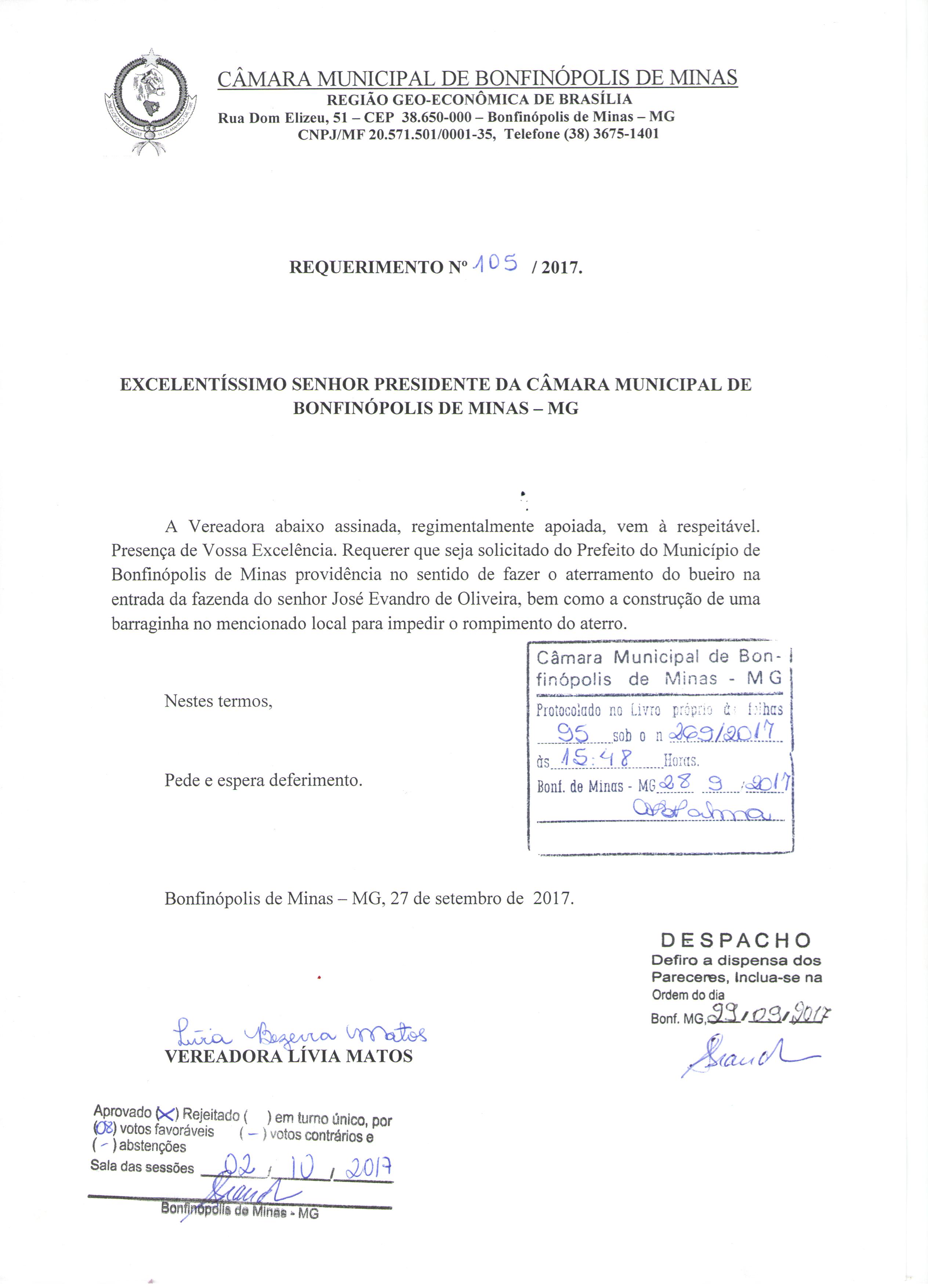 PROVIDÊNCIAS NO SENTIDO DE FAZER O ATERRAMENTO DO BUEIRO NA ENTRADA DA FAZENDA DO SENHOR JOSÉ EVANDRO DE OLIVEIRA, BEM COMO A CONSTRUÇÃO DE UMA BARRAGINHA NO MENCIONADO LOCAL PARA IMPEDIR O ROMPIMENTO DO ATERRO. - - |