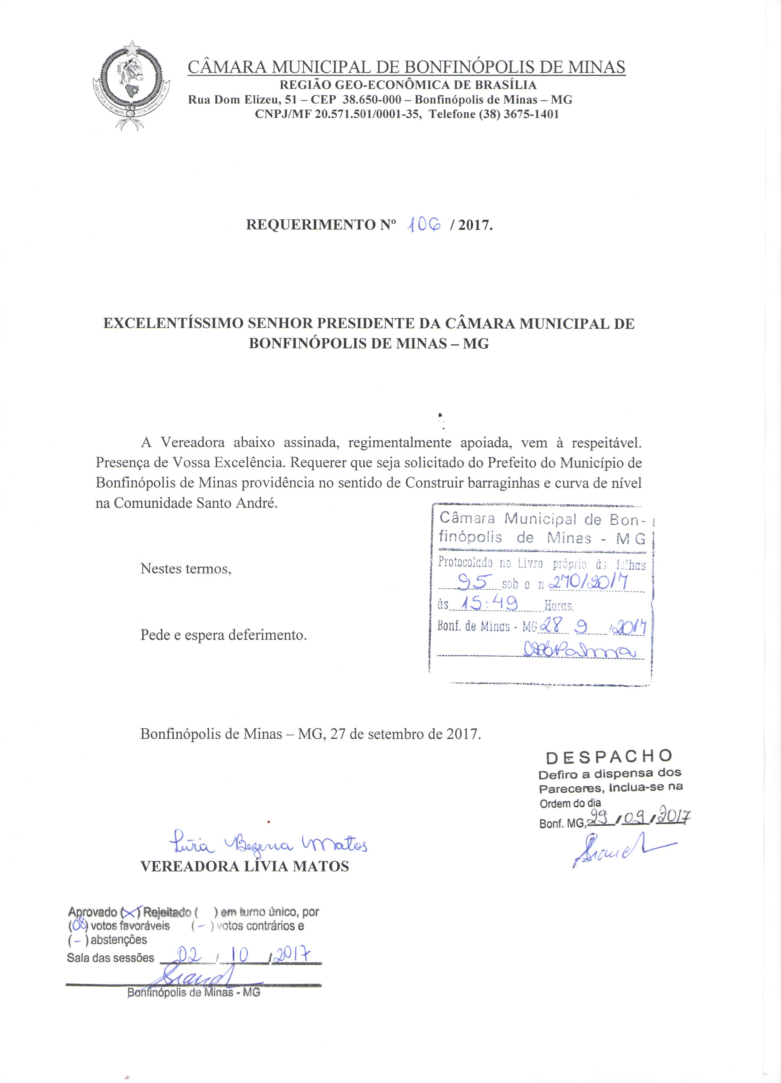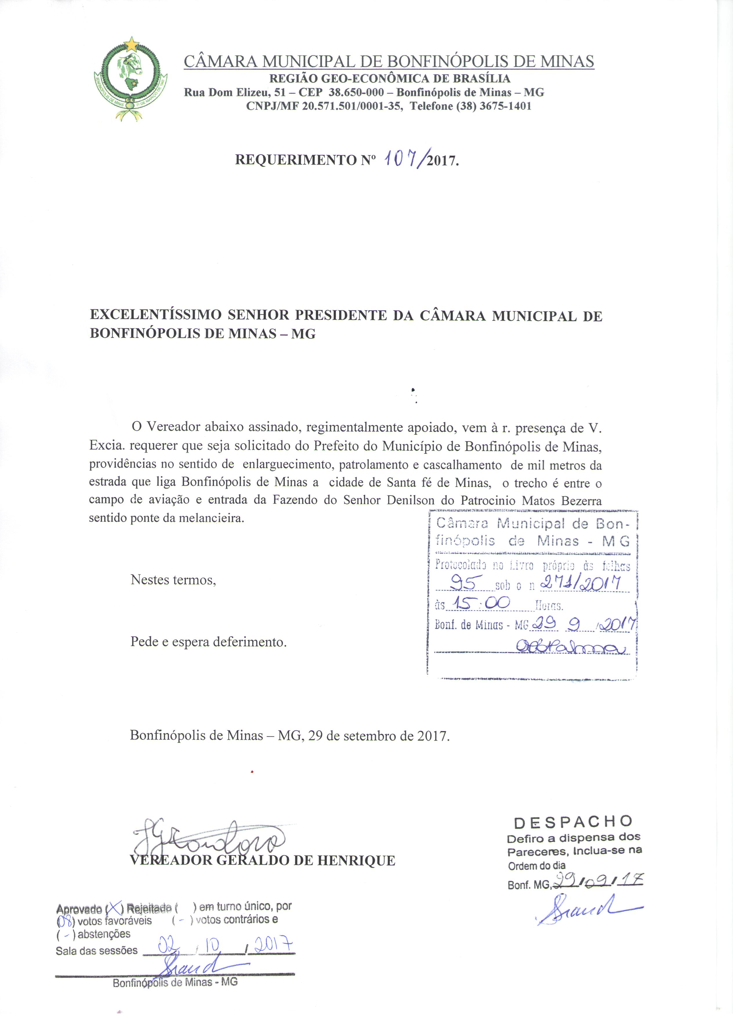 PROVIDÊNCIAS NO SENTIDO DE ENLARGUECIMENTO, PATROLAMENTO E CASCALHAMENTO DE MIL METROS DA ESTRADA QUE LIGA BONFINÓPOLIS DE MINAS À CIDADE DE SANTA FÉ DE MINAS, O TRECHO É ENTRE O CAMPO DE AVIAÇÃO E ENTRADA DA FAZENDA DO SENHOR DENILSON DO PATROCÍNIO MATOS BEZERRA SENTIDO PONTE MELANCIEIRA. - - |